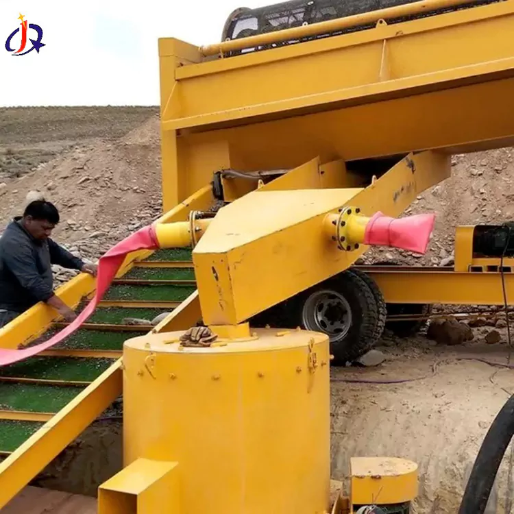 An alluvial gold prospecting vehicle is an integrated, mobile specialized device designed for extracting alluvial gold from placer deposits in river channels, riverbeaches, terraces, and other alluvial mining scenarios. It combines functions such as feeding, screening, ore washing, gold separation, and tailings discharge into a single unit, eliminating the need for fixed installation and enabling rapid relocation via towing for operational flexibility. Jinqi is currently offering factory-direct sales of its alluvial gold prospecting vehicles. If you require purchasing such equipment, please contact us.